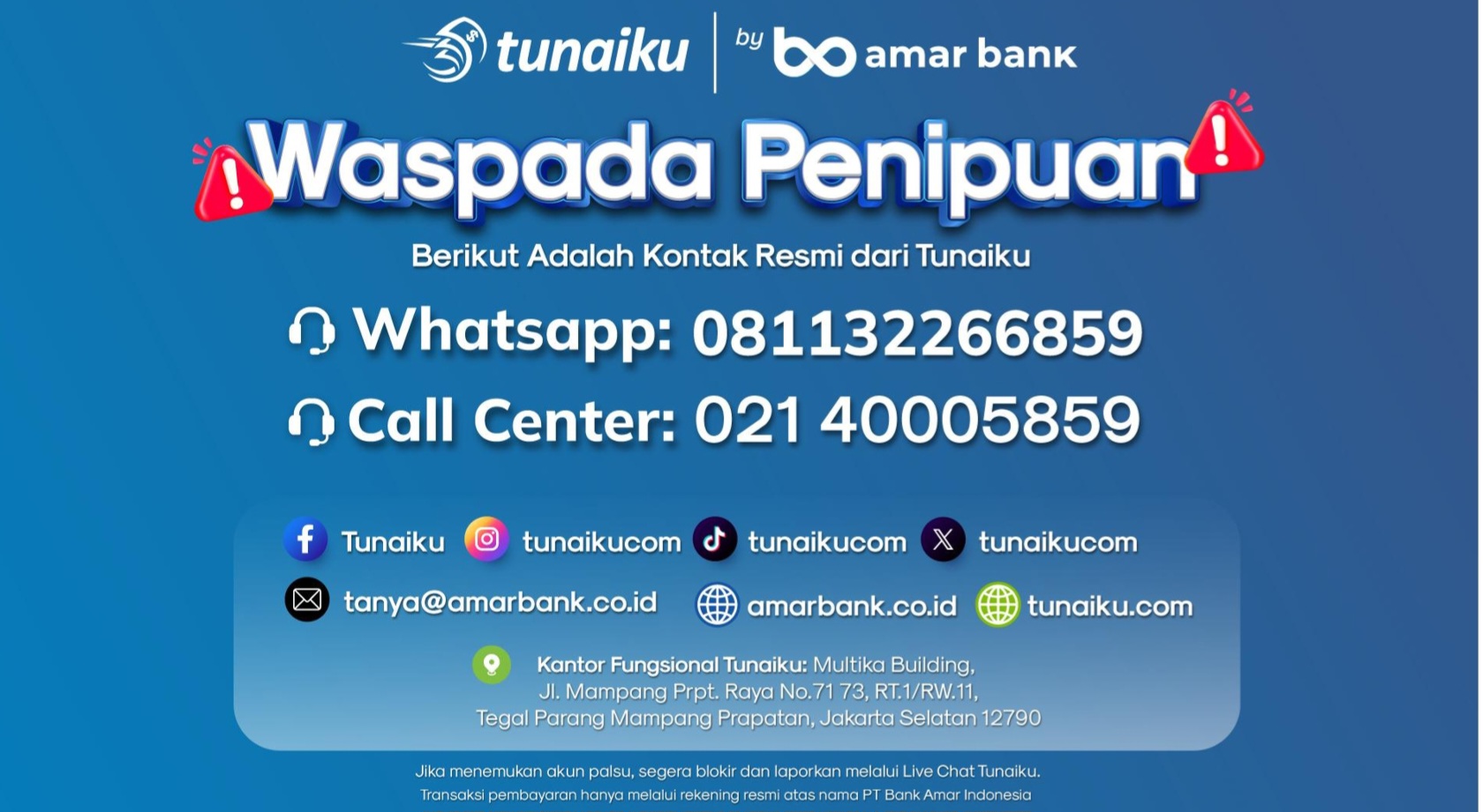 Sebagai pinjol yang terdaftar di OJK, Tunaiku memungkinkan Anda memenuhi kebutuhan tanpa menyentuh dana darurat. Untuk informasi lebih lanjut atau prosedur pembatalan, CS Tunaiku dapat dihubungi melalui WhatsApp 081132266859, telepon (021) 40005859, atau email [email protected].