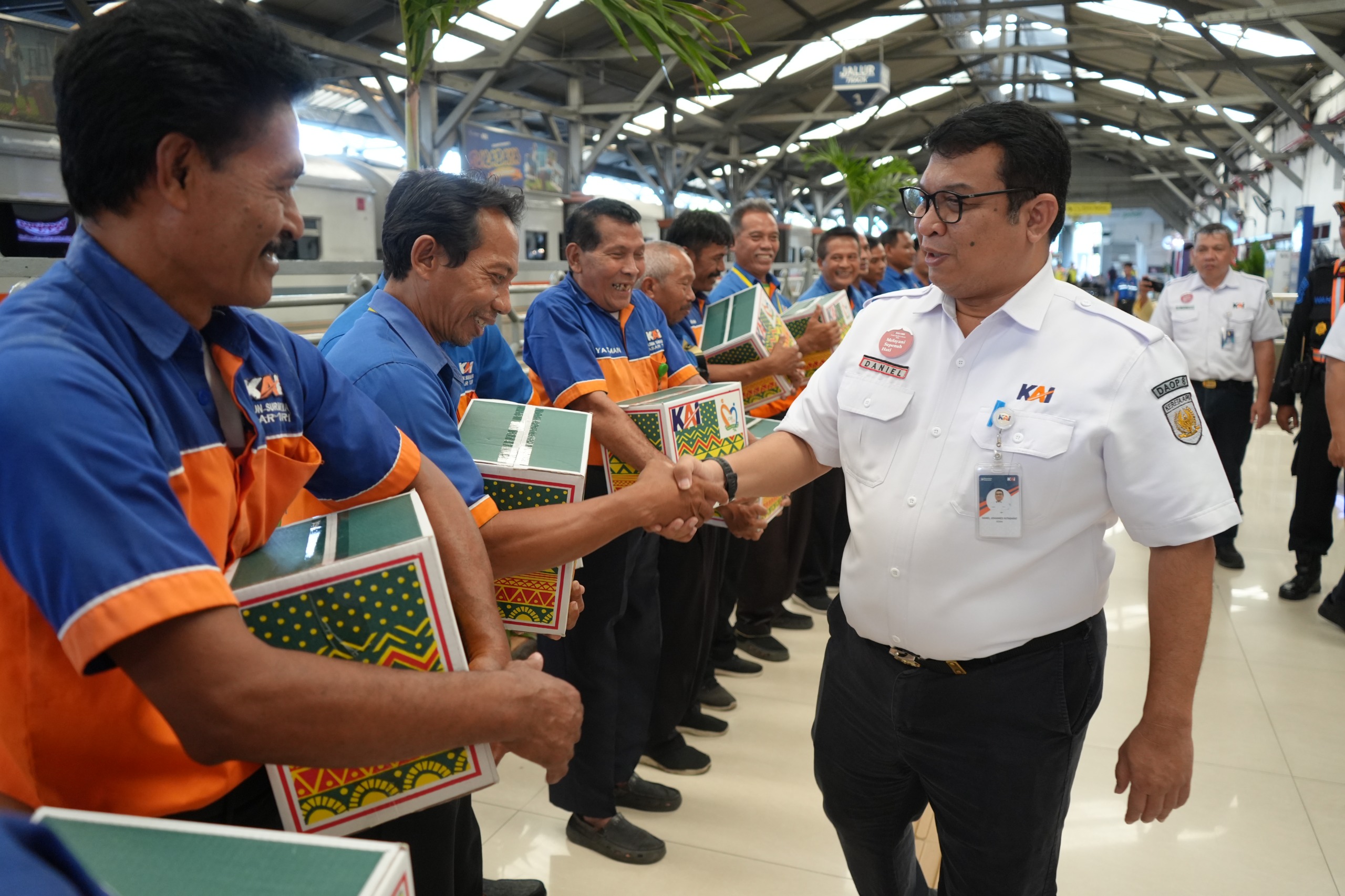 Penyerahan paket sembako dilakukan secara simbolis oleh Komisaris PT KAI Diah Natalisa bersama Executive Vice President KAI Daop 8 Surabaya Daniel Johannes Hutabarat kepada para porter di Stasiun Surabaya Gubeng dan Stasiun Surabaya Pasar Turi. Momen tersebut berlangsung hangat dan penuh kebersamaan sebagai wujud perhatian perusahaan kepada para pekerja di garda terdepan pelayanan.