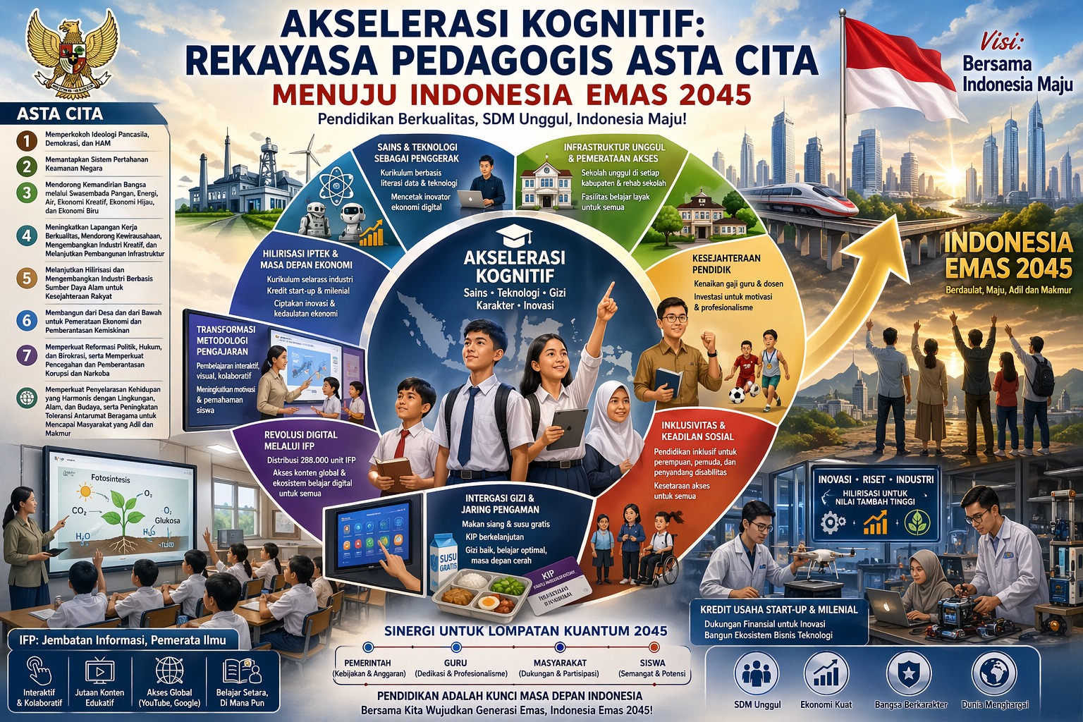 Dengan mengintegrasikan sains, teknologi, dan gizi, Indonesia sedang melakukan sebuah lompatan kuantum (quantum leap). Visi Asta Cita bukan sekadar mimpi, melainkan peta jalan yang terukur dan berlandaskan data. Pendidikan adalah kunci utama untuk membuka pintu gerbang kemajuan menuju Indonesia Emas 2045.