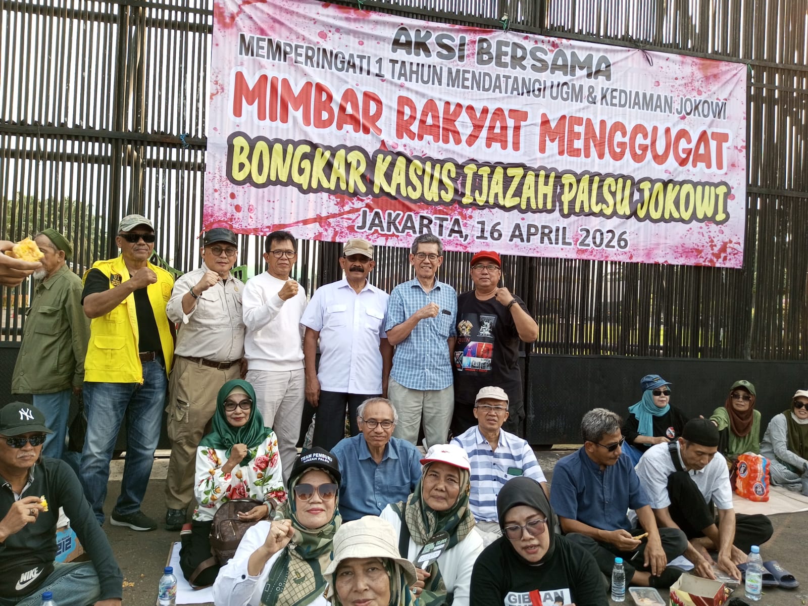 Jakarta, beritalima.com|- Sejumlah aktivis Nasionalis, Islam dan Purnawirawan TNI gelar aksi bersama di Gedung DPR RI, Senayan, Jakarta (16/5), terkait peringatan satu tahun mendatangi kampus Universitas Gajah Mada (UGM) dan kediaman mantan Presiden Joko Widodo (Jokowi) dengan agenda ‘Bongkar Kasus Ijazah Palsu Jokowi’.