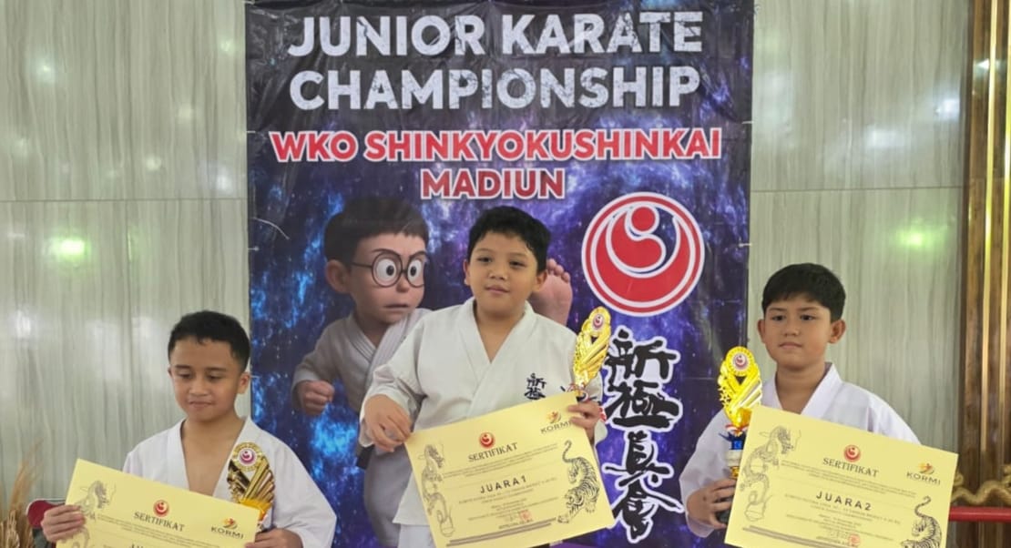 MADIUN, beritalima.com- Muhamad Akhtar Sinara Rajasyah alias Atar (12), warga Kelurahan Kuncen, Kecamatan Taman, Kota Madiun, Jawa Timur, meraih juara I dalam perlombaan beladiri karate World Karate Organization (WKO) Shinkyokushinkai, yang digelar di Universitas Widya Mandala (Wima), Kota Madiun, 16 November 2025.