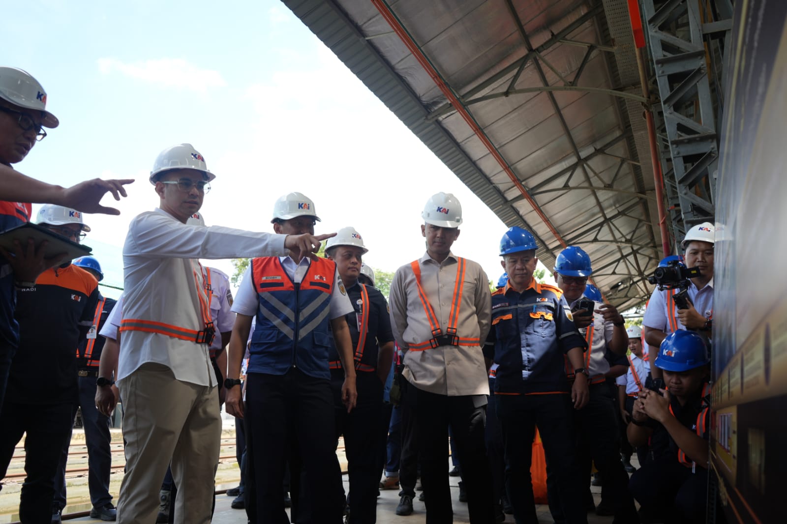Direktur Utama KAI Bobby Rasyidin meninjau langsung progres pengembangan sarana tersebut bersama Utusan Khusus Presiden Bidang Pembinaan Generasi Muda dan Pekerja Seni Raffi Ahmad ke Surabaya, Jawa Timur (18/2).