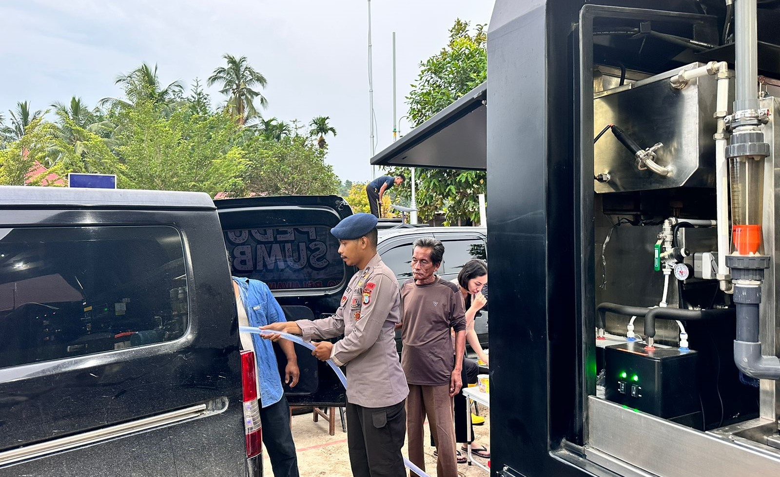 Dengan menggunakan kendaraan dilengkapi Tim Water Treatment beranggotakan dua personel di bawah pimpinan Bripda Dicky Nurul Fadillah, mereka bertugas sejak pukul 05.00 WIB hingga selesai, termasuk tetap bersiaga melayani warga yang membutuhkan air bersih hingga malam hari.