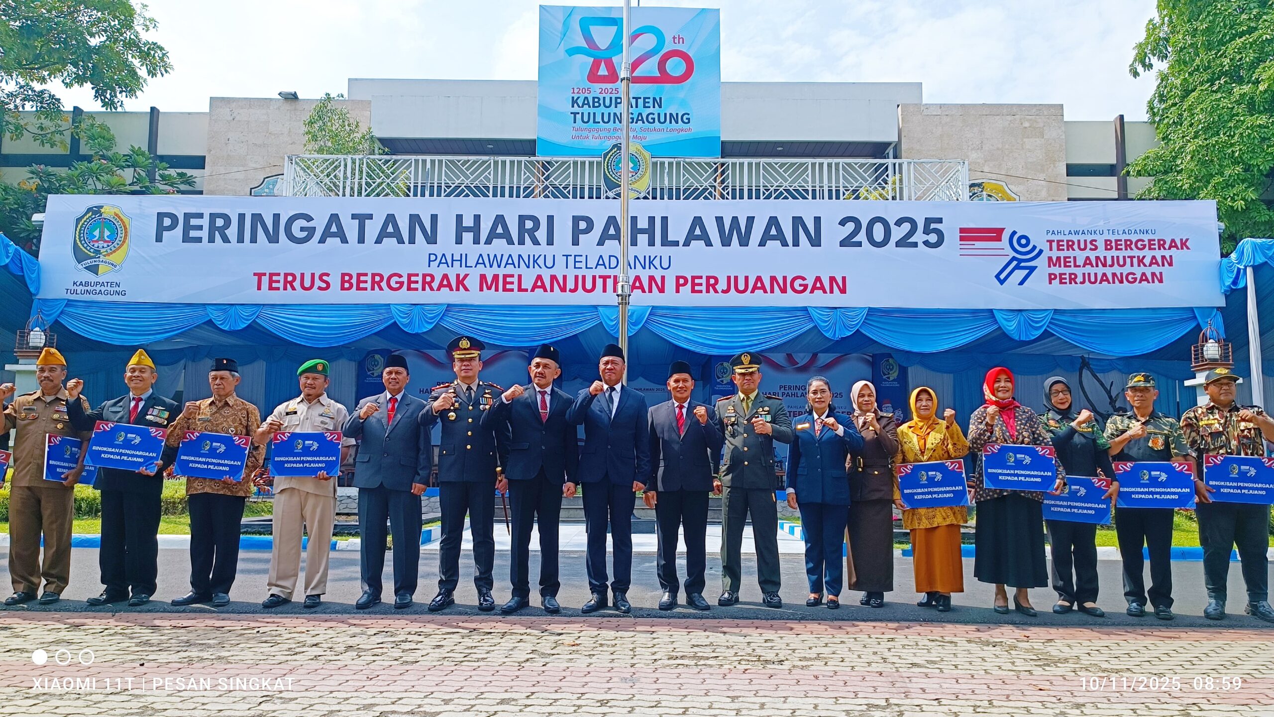 TULUNGAGUNG, beritalima.com-Pemerintah Kabupaten Tulungagung menggelar upacara peringatan Hari Pahlawan Tahun 2025, di halaman Kantor Pemkab Tulungagung, Senin (10/11/2025).