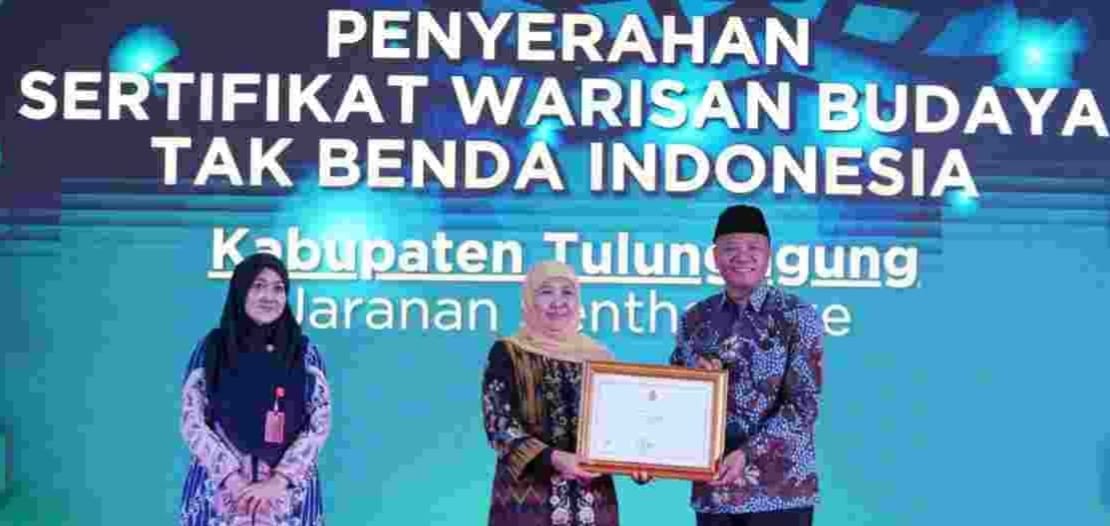 TULUNGAGUNG, beritalima.com- Bupati Tulungagung, H. Gatut Sunu Wibowo, SE ME, menerima penghargaan atas penetapan Jaranan Senterewe sebagai Warisan Budaya Tak Benda (WBTB) Indonesia.