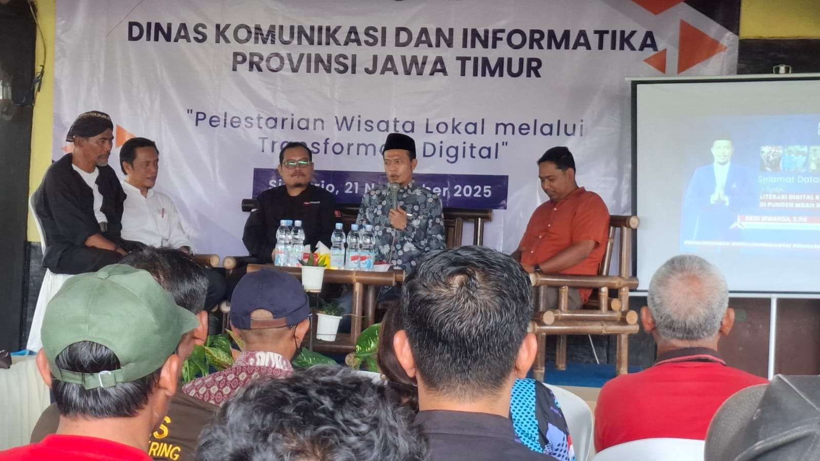 SIDOARJO, beritalima.com – Ketua Komisi A DPRD Provinsi Jawa Timur, Dedi Irwansyah, menegaskan bahwa digitalisasi harus menjadi strategi utama dalam mengangkat potensi wisata lokal di Jawa Timur. Hal itu ia sampaikan dalam kegiatan bertajuk “Pelestarian Wisata Lokal Melalui Transformasi Digitalisasi”, sebuah forum yang menggandeng Diskominfo Provinsi Jawa Timur, influencer kreatif, serta jurnalis senior sebagai narasumber.