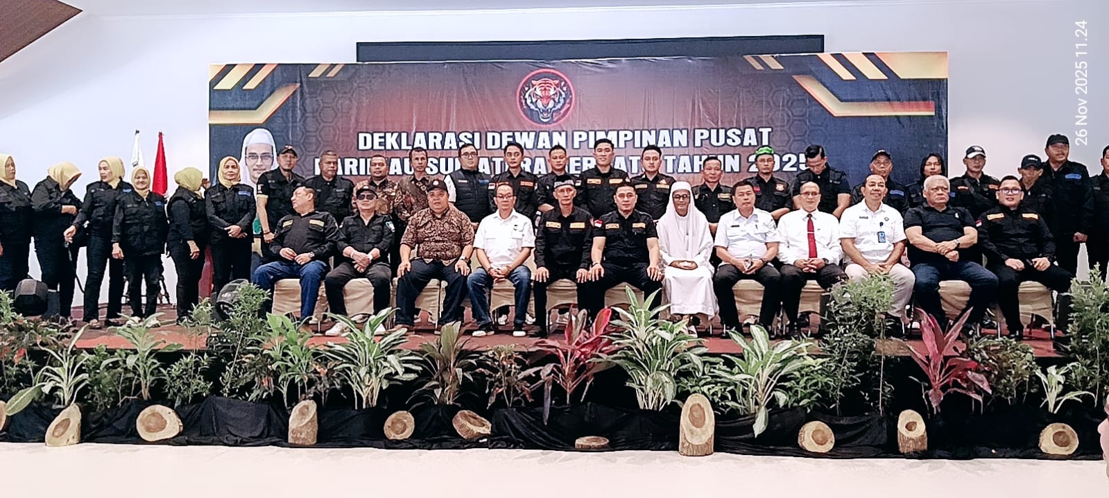PALEMBANG, beritaLima.com | Ormas Harimau Sumatera selatan resmi mendeklarasikan Dewan Pimpinan Pusat (DPP) dalam sebuah acara yang berlangsung khidmat dan meriah di Gedung Kebun Gede, Jalan Sultan M. Mansyur No. 687, Kelurahan 32 Ilir, Kecamatan Ilir Barat II, Kota Palembang, Rabu (26/11/2025).