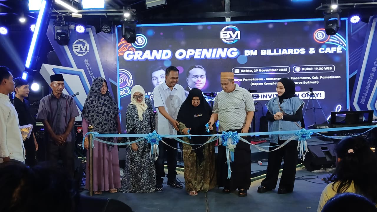 PAMEKASAN, Beritalima.com| BM Billiards & Cafe resmi dibuka di Jalan Raya Pamekasan, Desa Buddagan, Kecamatan Pademawu, Kabupaten Pamekasan, Sabtu (29/11/2025) malam.