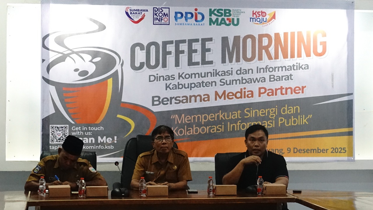 SUMBAWA BARAT, NTB.Beritalima.com| Dinas Komunikasi dan Informatika Kabupaten Sumbawa Barat (KSB) menggelar acara Coffee Morning bersama Media Partner dengan tema “Memperkuat Sinergi dan Kolaborasi Informasi Publik” pada Selasa (9/12/25) bertempat di Aula Diskominfo Kabupaten Sumbawa Barat.
