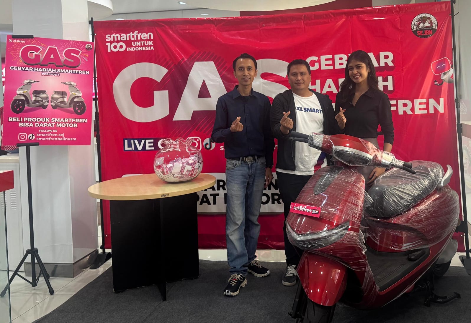 Smartfren menghadiahkan total dua unit motor listrik kepada pelanggan. Unit pertama dimenangkan pelanggan di Mataram, Nusa Tenggara Barat, sedangkan unit kedua diraih Nanang, driver online asal Kota Malang.