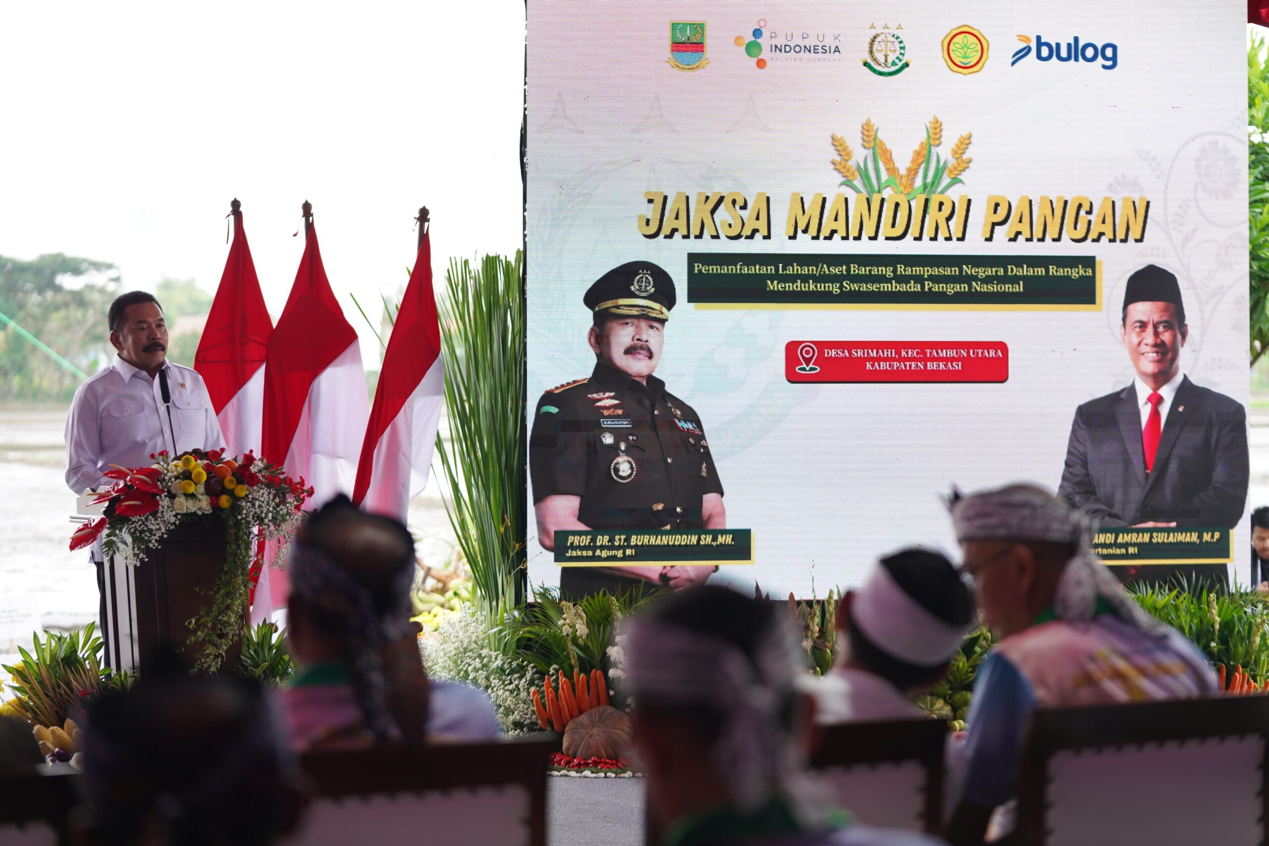 Jaksa Agung ST Burhanuddin secara resmi meluncurkan program “Jaksa Mandiri Pangan” di Kabupaten Bekasi, Jawa Barat (22/5), sebagai inisiatif strategis Kejaksaan mendukung ketahanan pangan nasional melalui optimalisasi aset negara, khususnya tanah-tanah hasil sitaan yang selama ini terbengkalai.