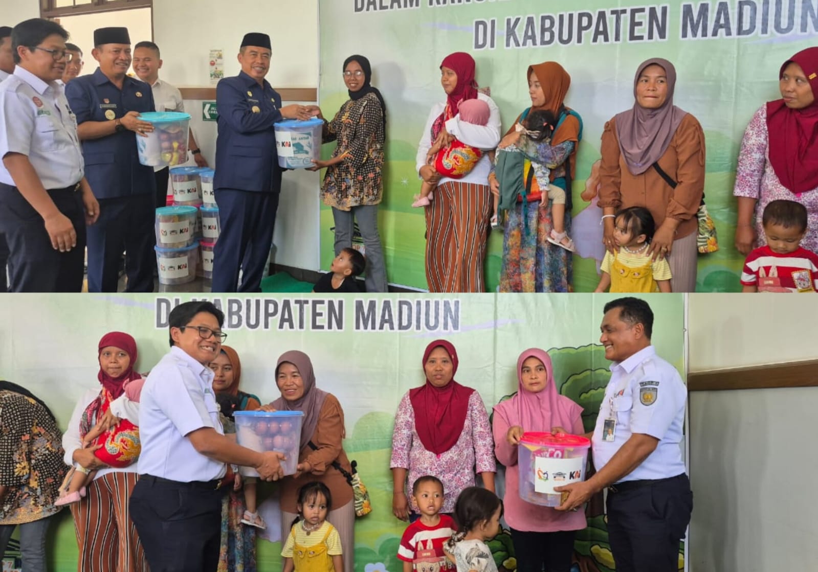 Bertempat di Stasiun Babadan, KAI Daop 7 Madiun menyalurkan bantuan asupan gizi senilai Rp.57,5 juta untuk mendukung percepatan penurunan stunting di wilayah Kabupaten Madiun.