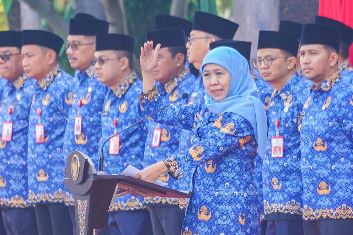 SURABAYA, beritalima.com | Gubernur Jawa Timur Khofifah Indar Parawansa memimpin Apel Aparatur Sipil Negara (ASN) di lingkungan Pemerintah Provinsi Jawa Timur yang digelar di halaman Kantor Sekretariat Daerah Provinsi Jawa Timur, Rabu (18/3/2026).
