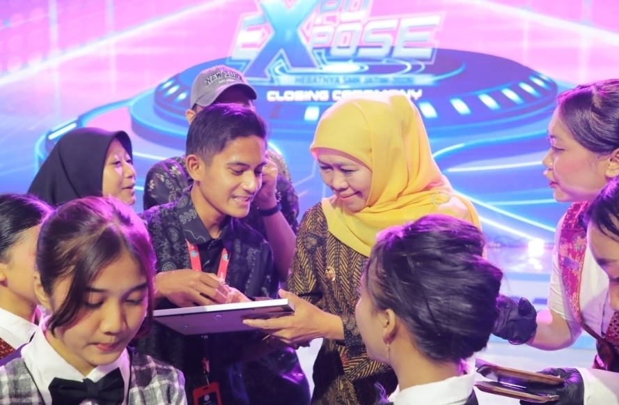SURABAYA, beritalima.com | Gubernur Jawa Timur Khofifah Indar Parawansa melakukan pencanangan gerakan bebas sampah plastik di lingkungan sekolah yang digelar di sela Expo dan Expose Hebatnya SMK Jatim, di Grand City, Sabtu (14/2/2026).
