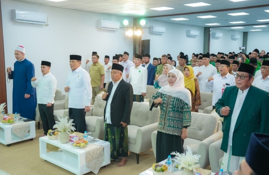 SURABAYA, beritalima.com | Gubernur Jawa Timur Khofifah Indar Parawansa menghadiri pembukaan Rapat Kerja Nasional (Rakernas) Persatuan Guru Nahdlatul Ulama (Pergunu) dan Jaringan Kyai Santri Nasional (JKSN) sekaligus peresmian gedung Kantor Pusat JKSN, Sabtu (14/2/2026).