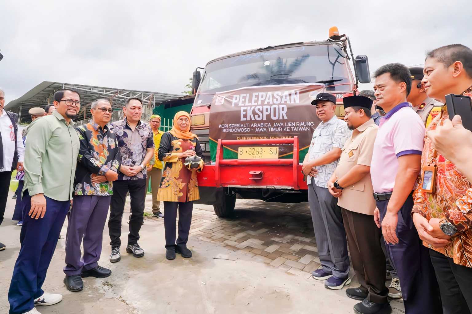 BONDOWOSO, beritalima.com – Gubernur Jawa Timur Khofifah Indar Parawansa melepas ekspor 10 ton kopi Arabika Specialty dan Fine Robusta Java Ijen Raung ke Taiwan. Pelepasan dilakukan di Desa Rejoagung, Kecamatan Sumberwringin, Kabupaten Bondowoso, Sabtu (1/1125).