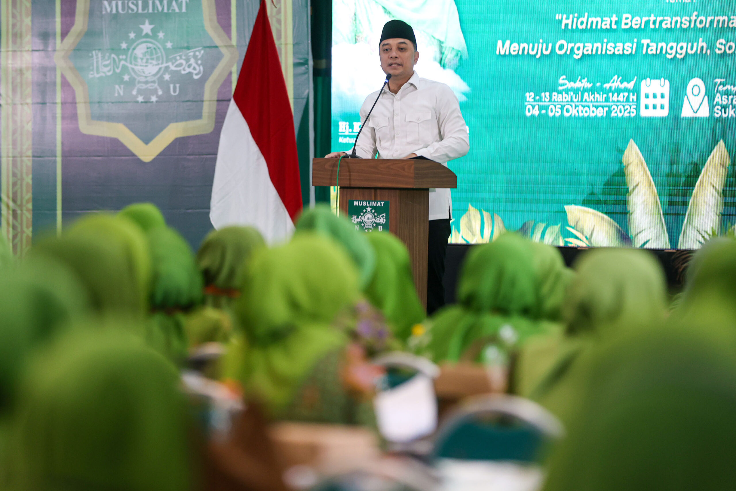 Surabaya, beritalima.com | Wali Kota Surabaya Eri Cahyadi menghadiri pertemuan rutin Himpunan Da’iyah dan Majelis Taklim (HIDMAT) Ke-XI Muslimat NU se-Jawa Timur, di Asrama Haji, Sukolilo, Surabaya pada Sabtu (4/10/2025). Tidak hanya dihadiri oleh Wali Kota Eri Cahyadi, pertemuan HIDMAT Muslimat NU kali ini turut dihadiri oleh Gubernur Provinsi Jawa Timur Khofifah Indar Parawansa.