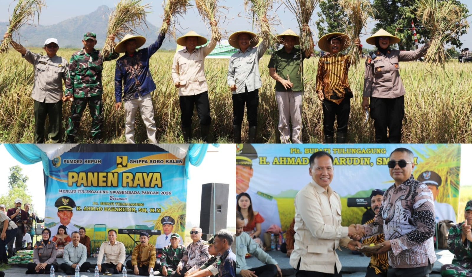 TULUNGAGUNG, beritalima.com-Pelaksana Tugas (Plt) Bupati Tulungagung, Ahmad Baharudin, menghadiri kegiatan panen raya di Desa Kepuh, Kecamatan Boyolangu. Kamis, (23/4/2026).