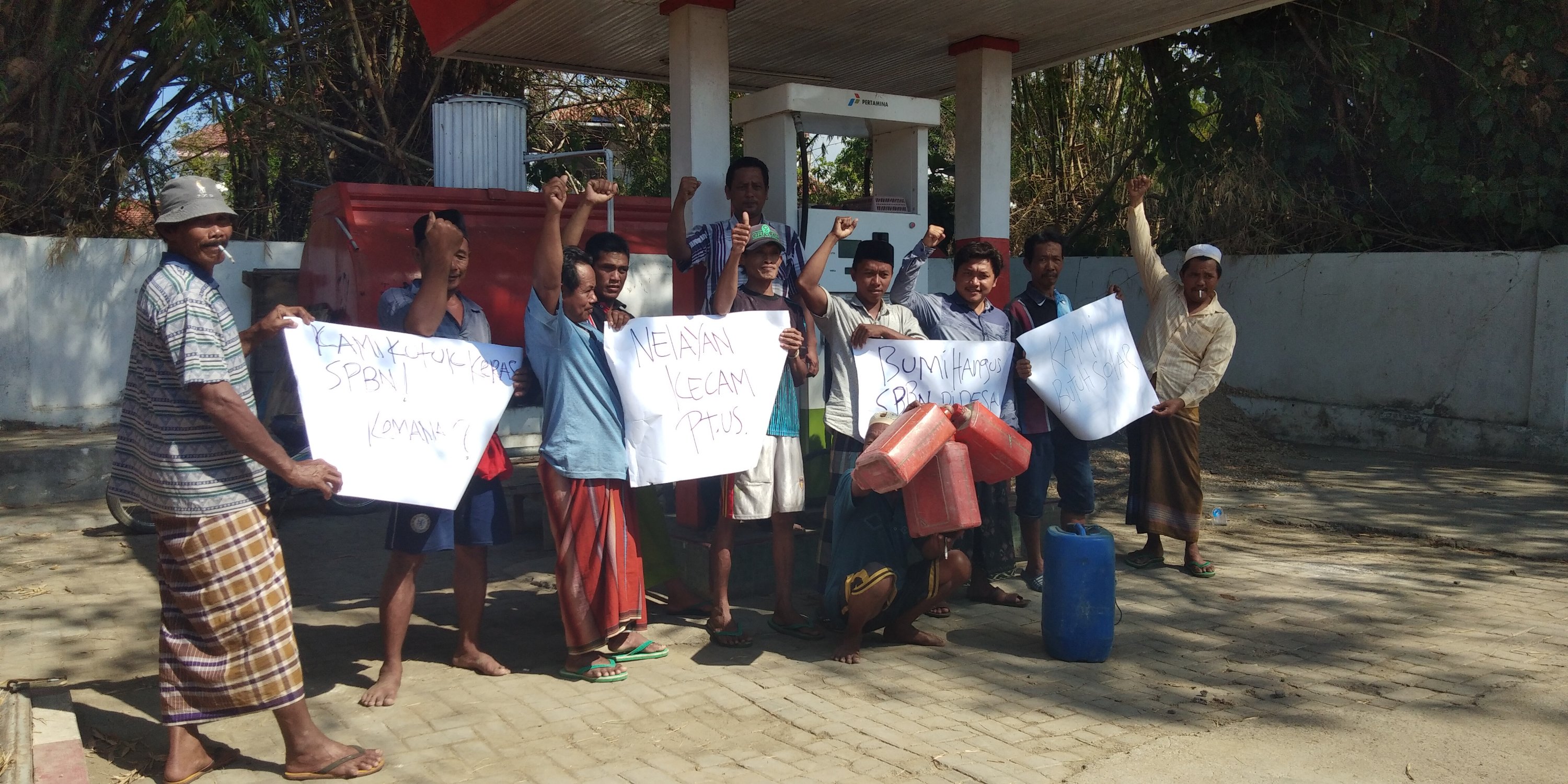 Caption: Ketika Para Nelayan Melakukan Aksi Protes Atas Non-Aktifnya Solar Bahan Bakar Minyak (BBM) bersubsidi ke Solar Packed Dealer Nelayan (SPDN) di Tempat Pelelangan Ikan(TPI), Dusun Karang Barat, Desa Tamberu, Kecamatan Batu Marmar.