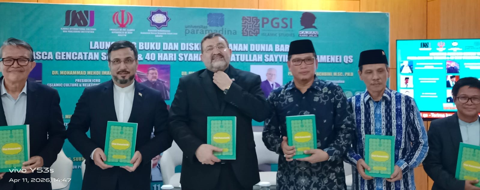 Hal ini menjadi topik bahasan di Universitas Paramadina, Cipayung, Jakarta (11/4). Dalam sebuah diskusi bertema “Tatanan Dunia Baru? Pasca Gencatan Senjata & 40 Hari Syahadah Ayatullah Sayyid Ali Khamenei”, disemarakkan juga dengan peluncuran buku edisi terbaru Revolusi Iran, ditulis Dr. Nasir Tamara.