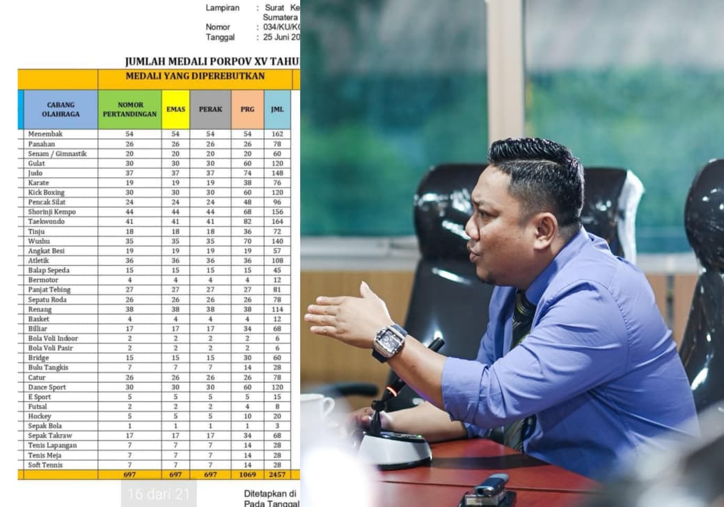 “Ini jelas bentuk manipulasi. Dari mana angka 57 itu muncul? Di PON saja hanya ada 20 medali angkat besi. Ini Porprov, bukan PON. Apa logikanya?” tegas Sekretaris Umum KONI Palembang, Rubi Indiarta, S.H., M.H., dengan nada geram.