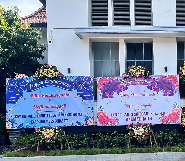 Seperti diketahui, Billy merupakan putra kedua advokat senior Surabaya, Dr. George Handiwiyanto. Tak heran jika acara pertunangannya turut mendapat perhatian dari berbagai kalangan, termasuk pejabat daerah hingga aparat penegak hukum.