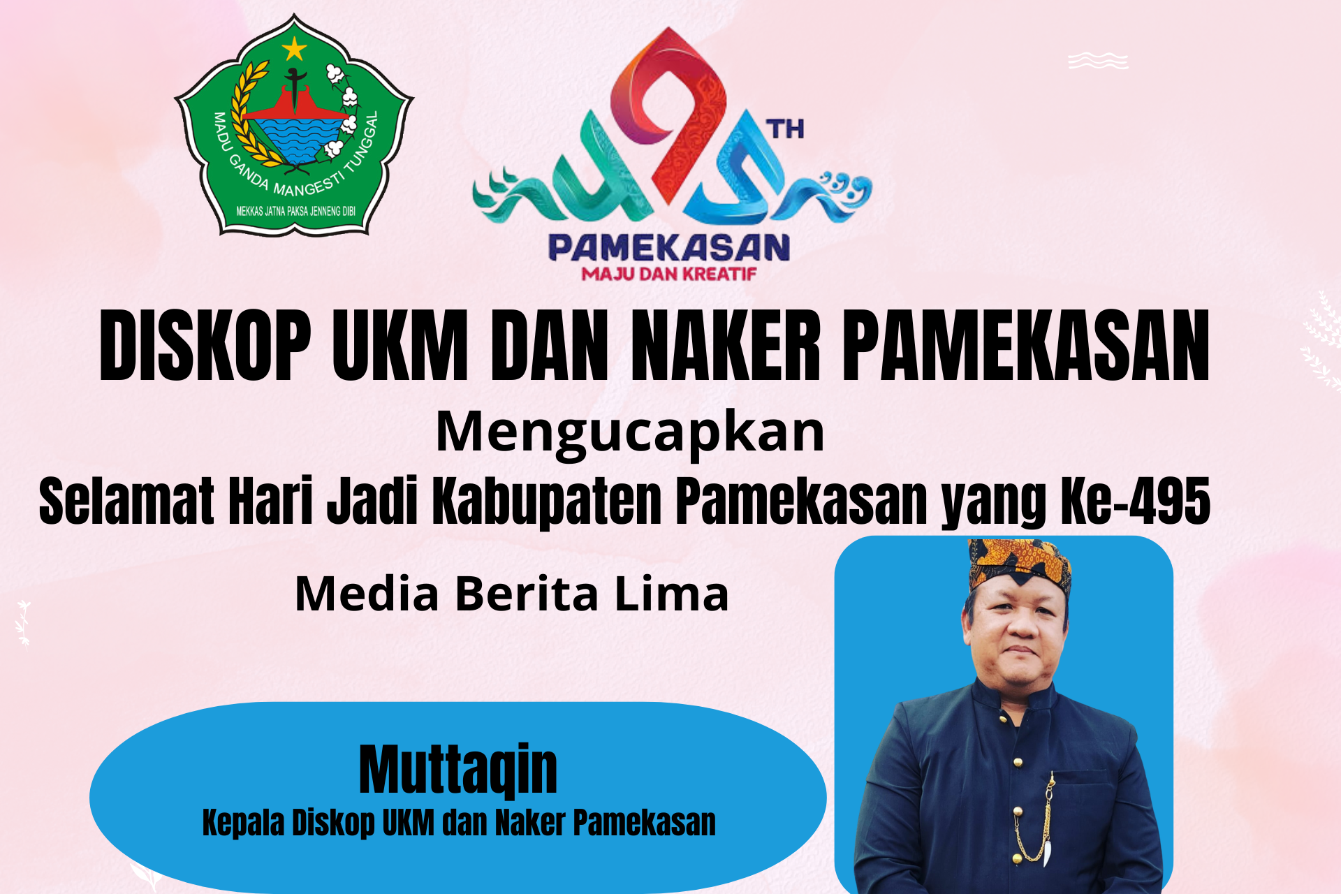 Keluarga Besar Diskop UKM dan Naker Pamekasan Mengucapkan Selamat Hari Jadi Kabupaten Pamekasan yang ke -495 redaktur PelaksanaKamis, 30 Oktober 2025 | 19:49 WIB500 views. Pos terkaitKeluarga Besar BPKPD Pamekasan Mengucapkan Selamat Hari Jadi kabupaten Pamekasan yang ke -495Keluarga Besar Dinas PUPR Mengucapkan Selamat Hari Jadi Kabupaten Pamekasan yang ke -495Alfian Desak Pemerintah dan Undang Pengusaha untuk Terlibat Membayar Tunggakan Iuran BPJSWarga Malang Nikmati Pameran Dirgantara di Lanud Abdulrachman SalehIndonesia Juga Punya Kami: Seruan dari Timur di Hari Sumpah PemudaPasutri Berseragam RSIA Puri Bunda Cekcok di Muka Umum, Direktur Menghindar!