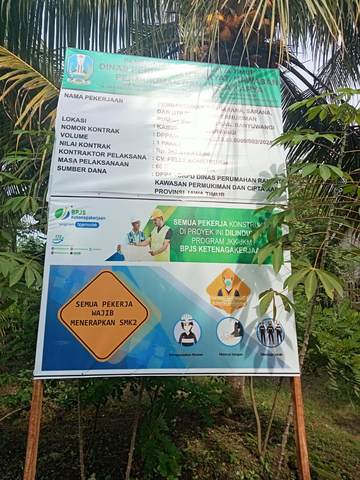 Proyek tersebut tercantum dalam papan informasi dengan nilai pagu Rp347.219.413 dan masa kerja 60 hari kalender. Sebagai pelaksana teknis, CV Velly Contruksi bertanggung jawab penuh terhadap mutu material, proses pengerjaan, serta kesesuaian spesifikasi dengan RAB yang telah ditetapkan dalam dokumen proyek.