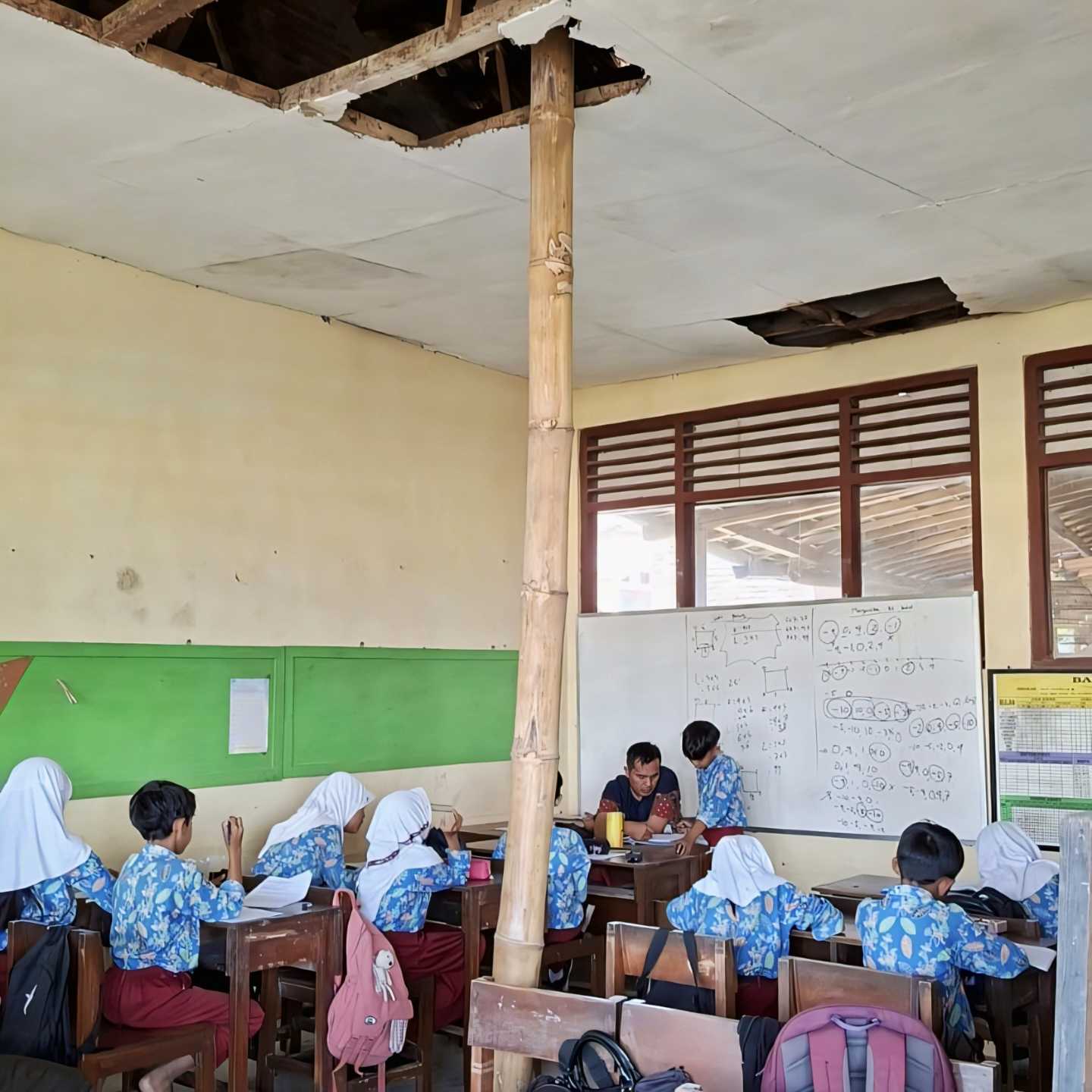 “Kami sebagai orang tua tentu khawatir melihat kondisi kelas seperti itu. Tapi anak-anak tetap harus sekolah. Kami berharap pemerintah segera memperbaiki agar mereka bisa belajar dengan aman dan nyaman,” ungkapnya.