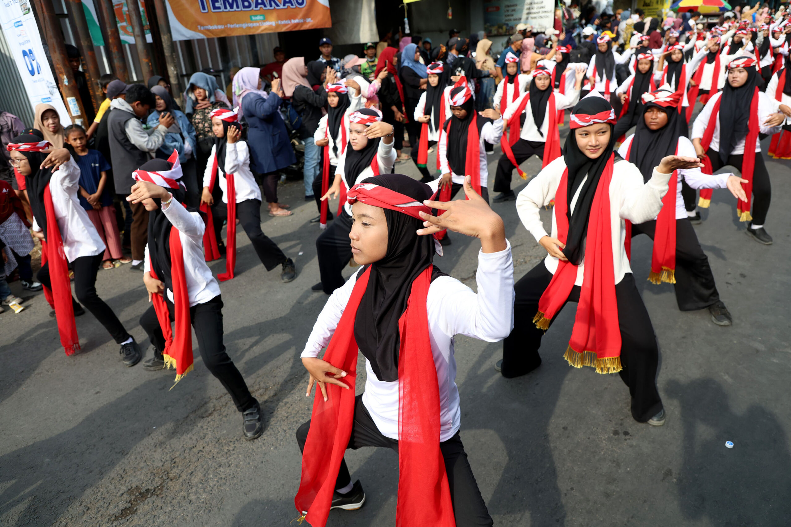 Usai prosesi, para peserta mengikuti Gebyar Tari Remo Massal di Jalan Raya Lidah Wetan. Penampilan ini sekaligus menjadi tanda pemberangkatan peserta napak tilas menuju Taman Bungkul sebagai titik akhir kegiatan.