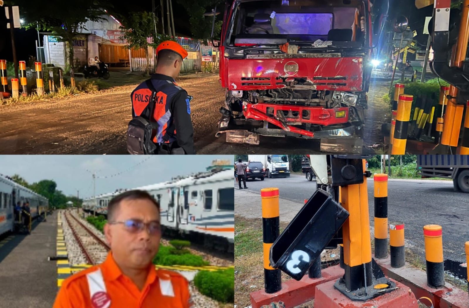 Tohari menjelaskan, kecelakaan terjadi saat petugas JPL 105 tengah melakukan pelayanan penutupan pintu perlintasan untuk mengamankan perjalanan KA 246B Majapahit. Sebuah dump truk yang telah berhenti di depan perlintasan kemudian tertabrak truk tronton yang datang dari arah belakang sehingga kedua kendaraan menghalangi jalur kereta api.
