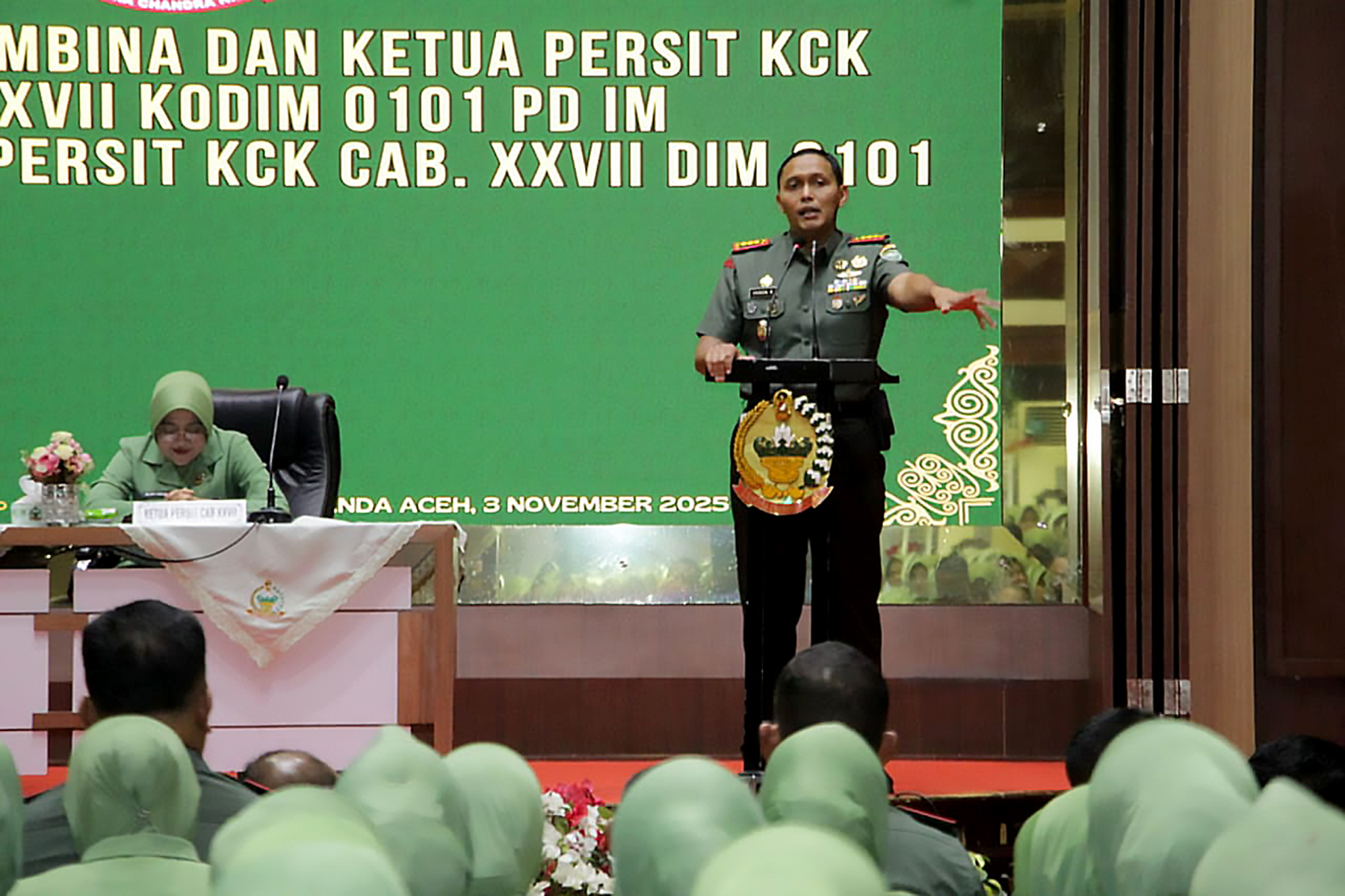 Banda Aceh, beritalima.com – Suasana hangat dan penuh keakraban menyelimuti kegiatan pengarahan Pembina dan Ketua Persit Kartika Chandra Kirana (KCK) Cabang XXVII Kodim 0101/Kota Banda Aceh PD Iskandar Muda yang berlangsung di Anjoeng Mon Mata, Pendopo Gubernur Aceh, Gampong Peuniti, Kecamatan Baiturrahman, Kota Banda Aceh, Senin (03/11/2025).