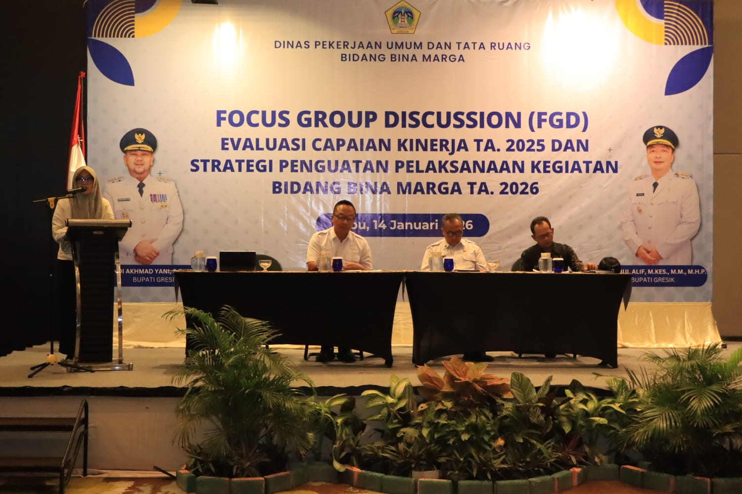 GRESIK, beritalima.com — Wakil Bupati Gresik Asluchul Alif menegaskan percepatan perbaikan infrastruktur jalan menjadi fokus utama Pemerintah Kabupaten Gresik pada 2026. Hal itu disampaikan saat membuka Rapat Evaluasi Capaian Kinerja Dinas Pekerjaan Umum dan Tata Ruang (PUTR) di Hotel Aston Gresik, Rabu (14/1/2026).