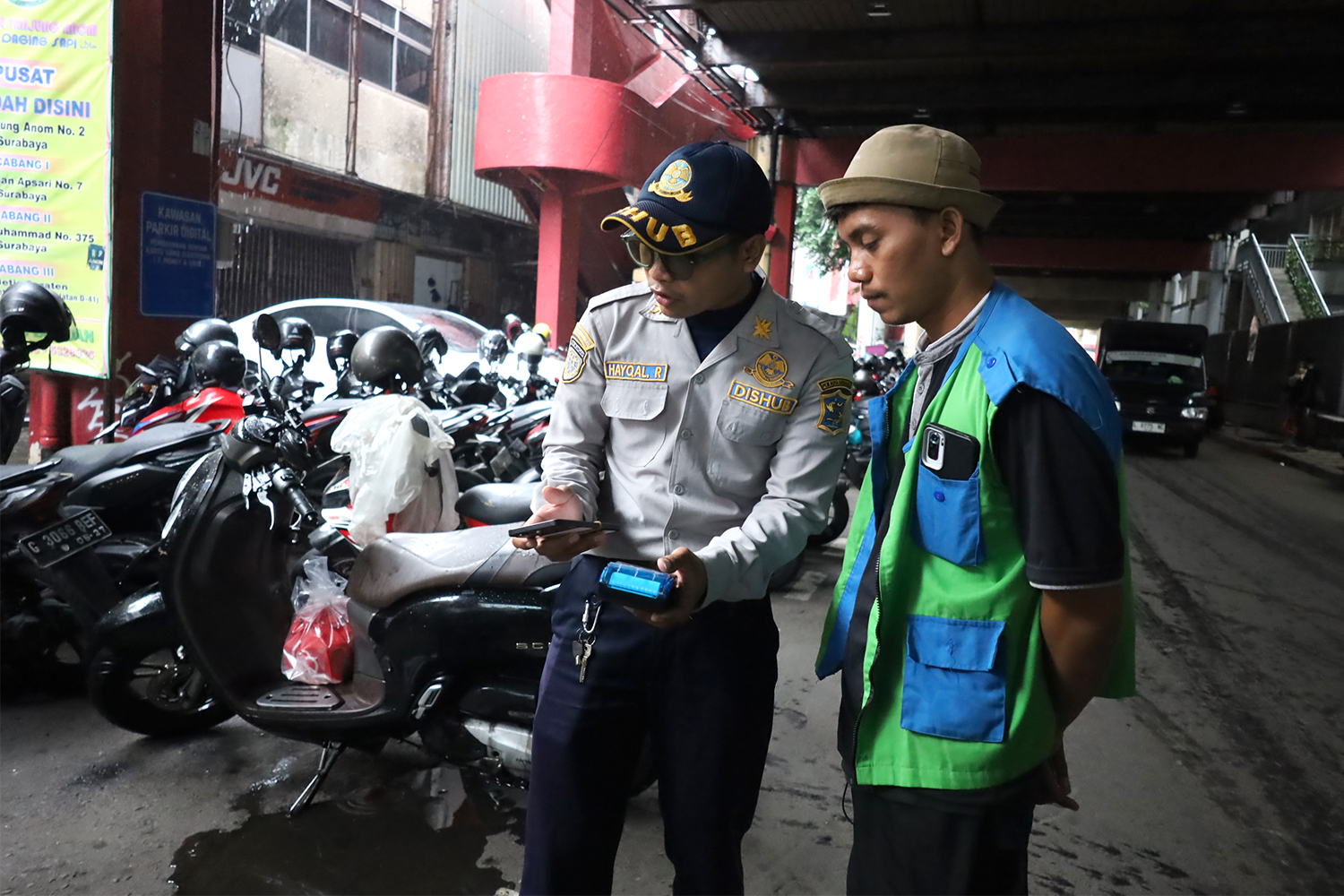 Dalam sistem pembayaran digital, masyarakat dapat menggunakan QRIS atau uang elektronik, dengan informasi lokasi parkir dan rekening pemerintah kota yang langsung muncul di perangkat petugas.