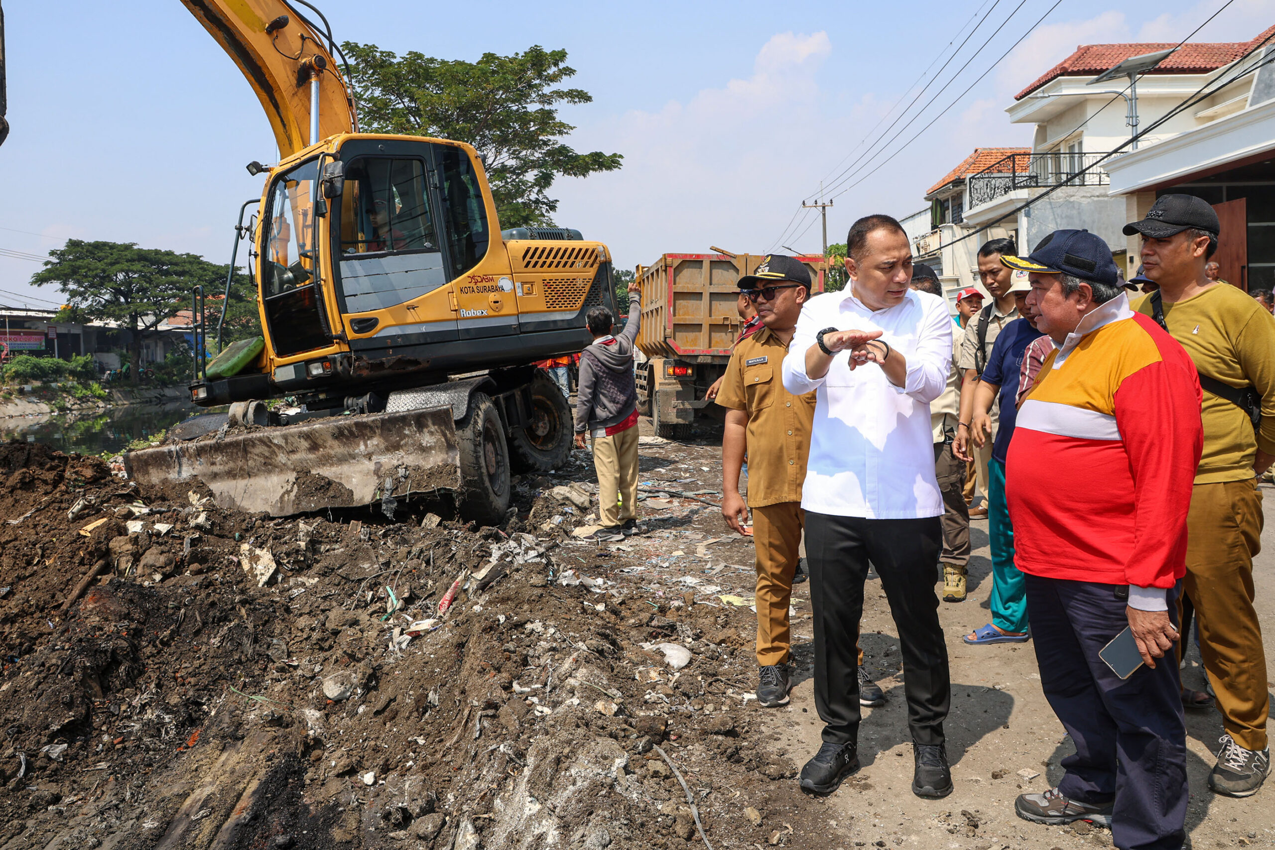 “Warga Surabaya semua saya taruh di sini semua jadi petugas kebersihan mengambil sampah di sungai. Biar merasakan capeknya, merasakan kepanasan, maka saya minta tolong kepada warga Surabaya, ini kota panjenengan, jangan buang sampah sembarangan,” tuturnya.