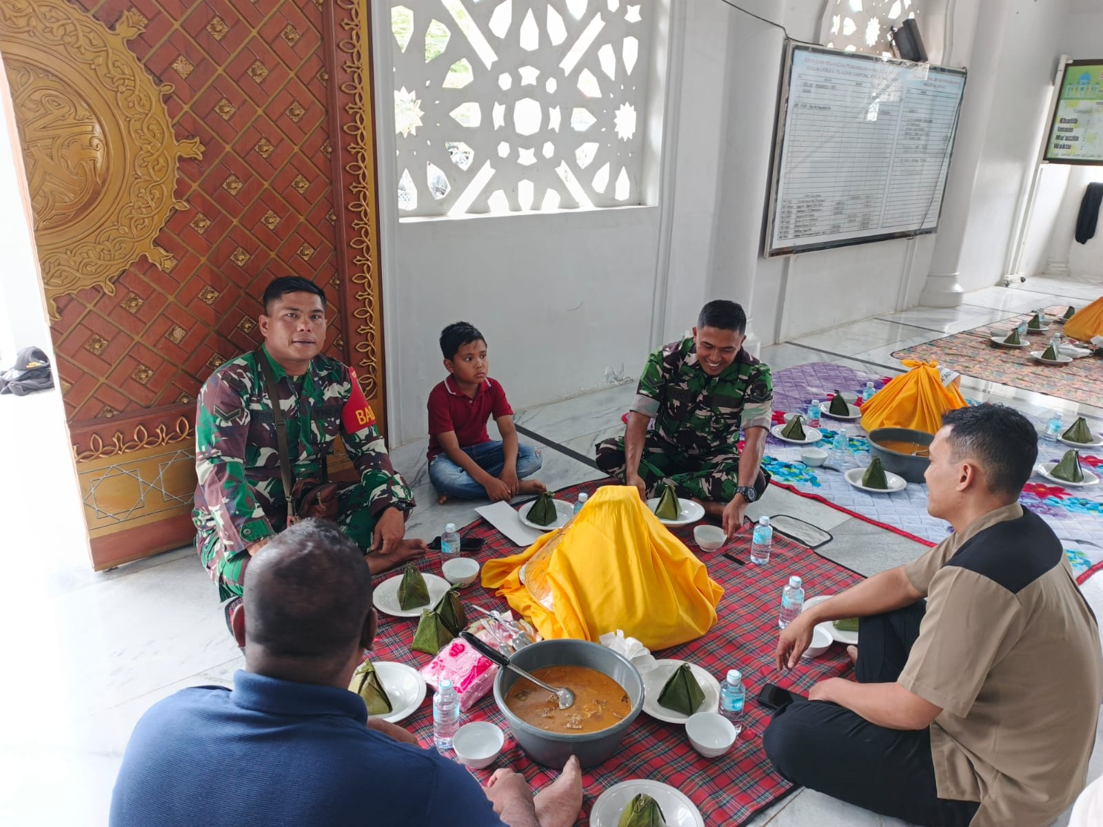 Suasana kebersamaan tampak hangat ketika warga dan Babinsa duduk bersama menikmati hidangan kenduri Maulid. Kehadiran personel Koramil juga mendapat sambutan hangat dari para tokoh masyarakat yang mengapresiasi peran aktif TNI dalam menjaga hubungan baik dengan warga.