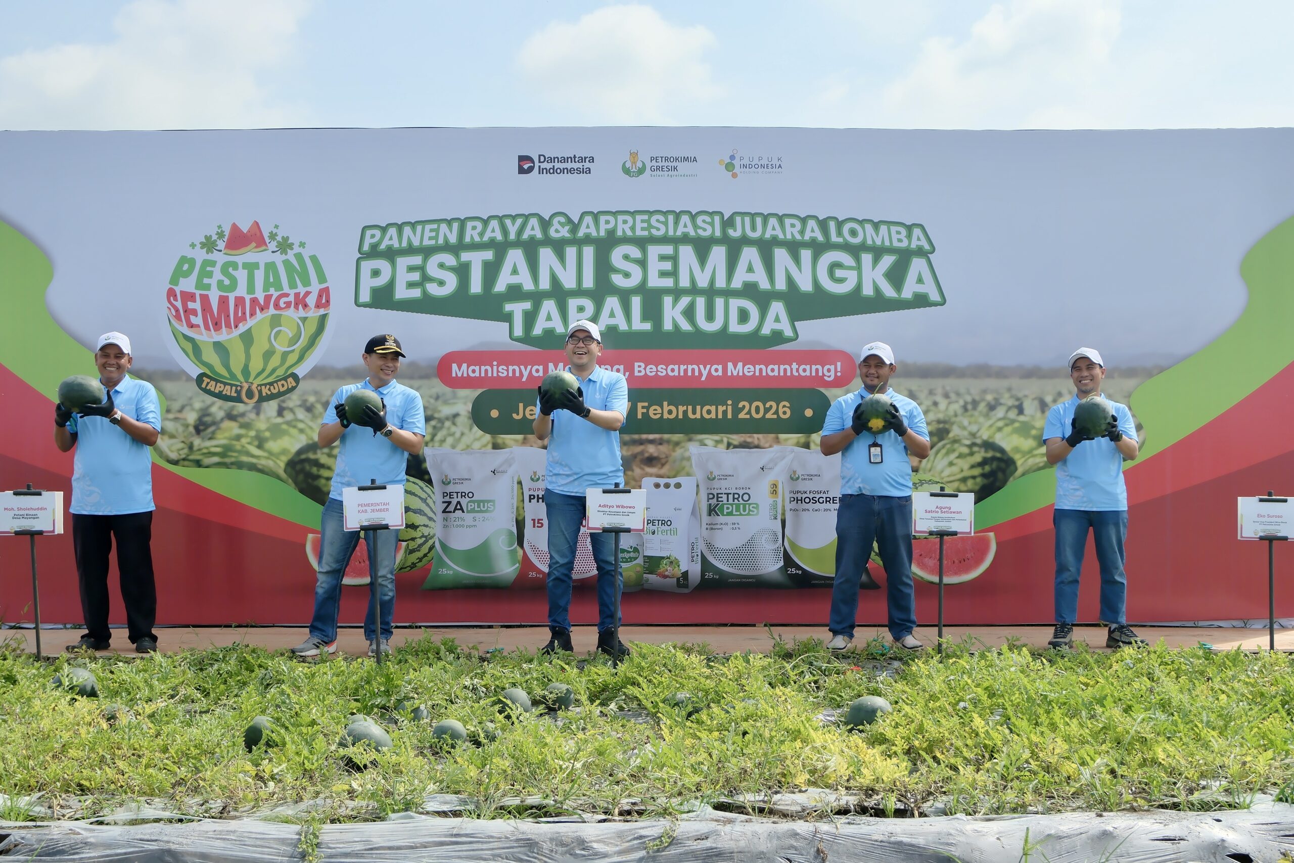 “Selama perlombaan, Petrokimia Gresik memberikan pendampingan kepada para petani. Dengan penerapan teknologi yang tepat dan penggunaan pupuk berkualitas, komoditas semangka menjadi lebih tahan terhadap curah hujan tinggi, sehingga produktivitas petani dapat ditingkatkan di momen Ramadan tahun ini,” ujar Adit, sapaan akrab Adityo Wibowo, dalam acara Panen Raya dan Apresiasi Juara Lomba Pestani Tapal Kuda di Jember, Jawa Timur, Selasa (17/2/2026).