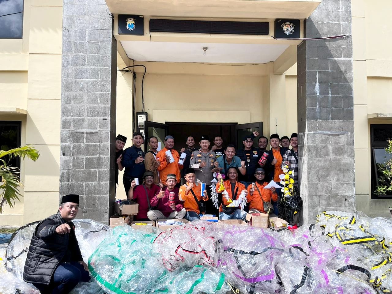 Teks Foto: Tim Gabungan PLN, TNI dan Polri di Blitar berhasil mengamankan barang bukti balon udara dan petasan.