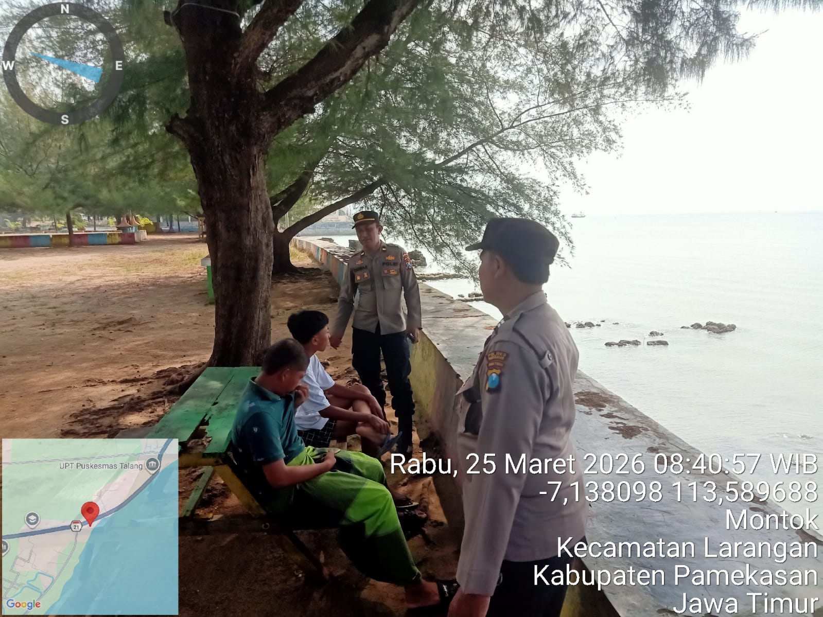 PAMEKASAN, Beritalima com– Guna menjamin keamanan dan kenyamanan masyarakat di kawasan wisata, personel Pos Pengamanan (Pos Pam) Talang Siring melaksanakan pengecekan rutin di Objek Vital (Obvit) Wisata Pantai Talang Siring, Rabu (25/03/2026).