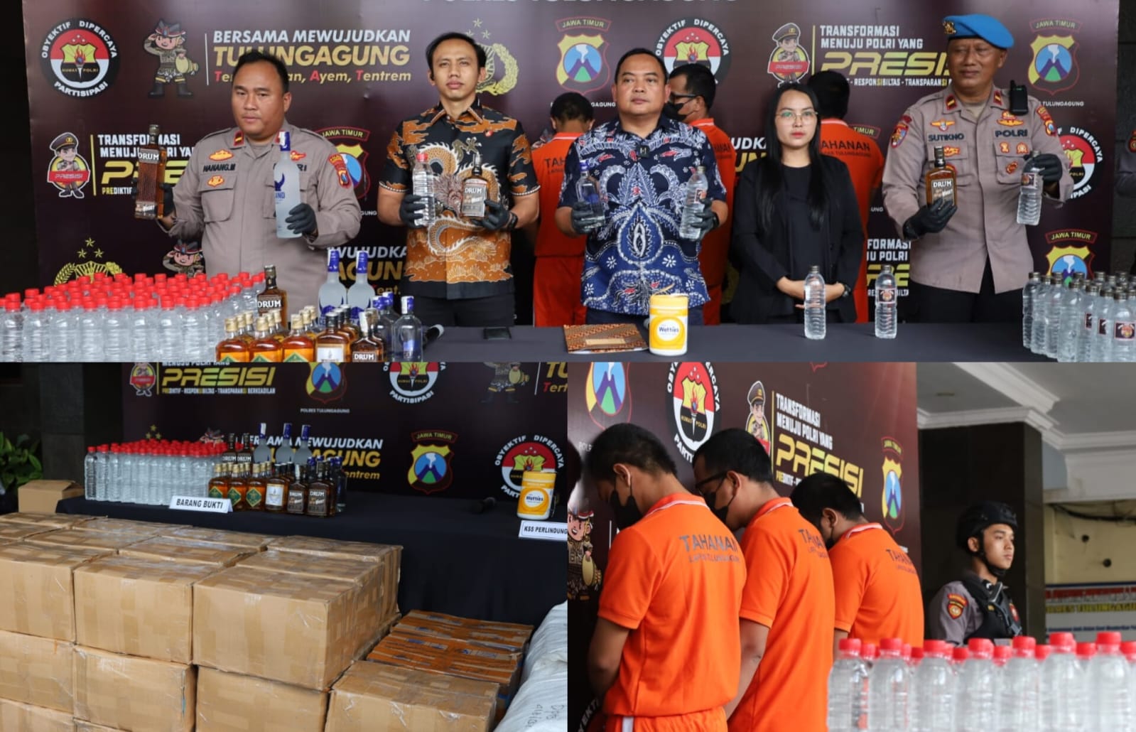Tulungagung, beritalima.com- Polres Tulungagung, Jawa Timur, menggelar konferensi pers pengungkapan jaringan peredaran minuman keras (miras) yang dipasarkan secara daring dengan sistem Cash on Delivery (COD), Jumat (07/11/2025).