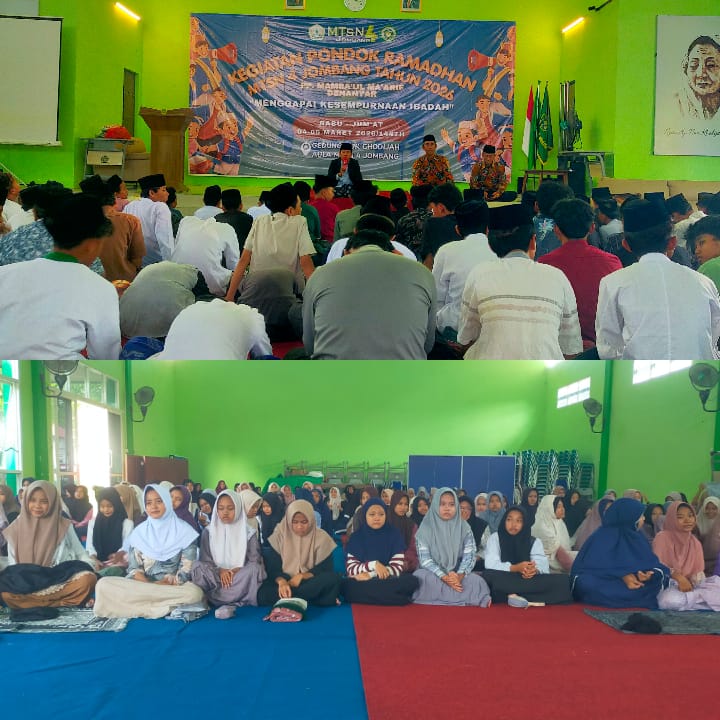 Jombang | beritalima.com – Pondok Ramadhan siswa siswi MTsN 4 Jombang berlangsung selama tiga hari Rabu 4 – Jum’at 6 Maret 2026 di tempatkan di Gedung Nur Chodijah, Aula MTsN 4 Jombang. Kegiatan ini diharapkan Pengasuh Pondok Pesantren Mambaul Ma’arif menggapai kesempurnaan ibadah.