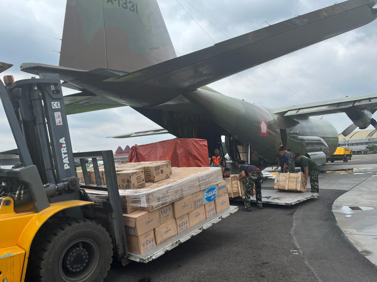 Penyaluran bantuan dilakukan melalui operasi angkutan udara dari Lanud Halim Perdanakusuma, Jakarta, menuju sejumlah pangkalan udara/bandara di wilayah terdampak, seperti Lanud Soewondo (Medan), Lanud Sutan Sjahrir (Padang), Bandara Sibolga, Lanud Roesmin Nurjadin (Pekanbaru), Bandara Lhokseumawe, serta Bandara Rembele.