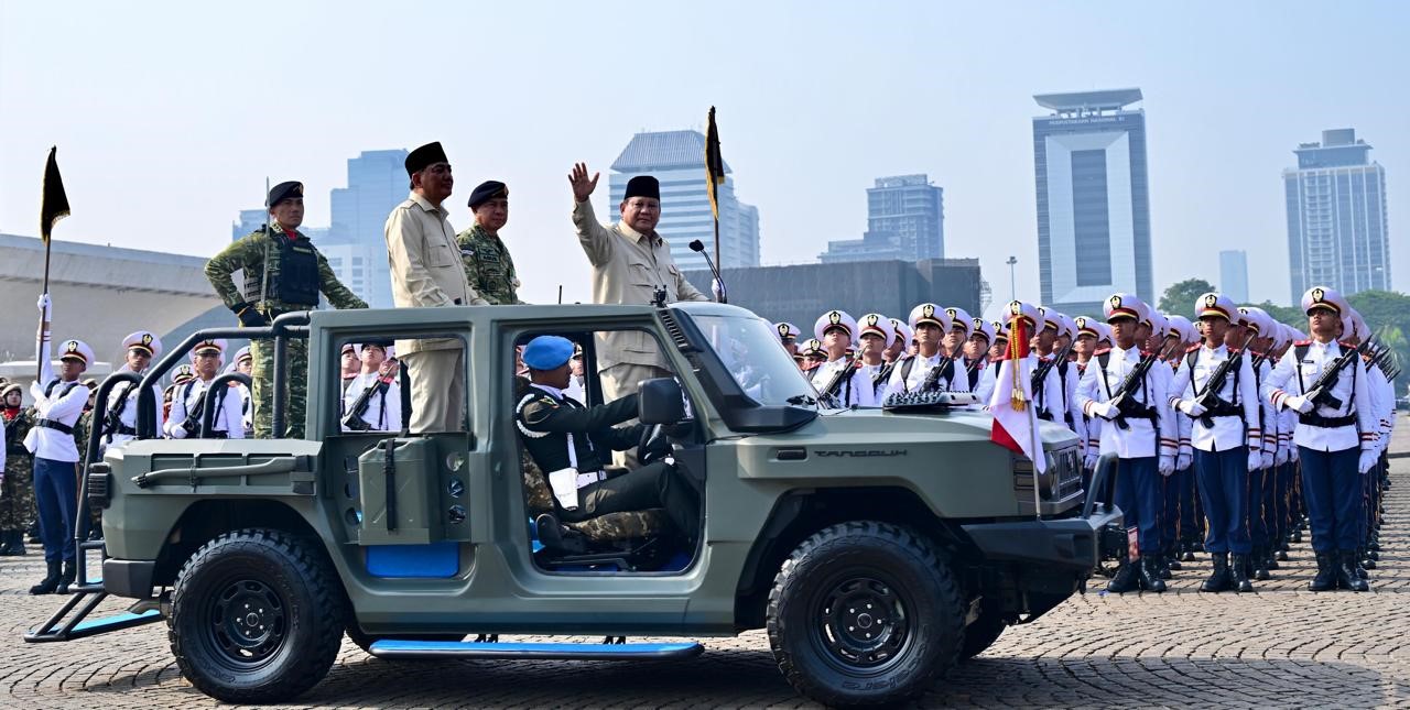 Jakarta, beritalima.com| – Presiden Prabowo Subianto bertindak sebagai inspektur upacara dalam Upacara Peringatan Hut TNI ke-80 di Lapangan Silang Monumen Nasional (Monas), Jakarta (5/10). Bertindak sebagai komandan upacara Letjen TNI Bambang Trisnohadi yang juga Panglima Komando Gabungan Wilayah Pertahanan III. Sementara itu, pada kesempatan ini Brigjen TNI Fitriana Nur Heru Wibawa bertindak sebagai perwira upacara.