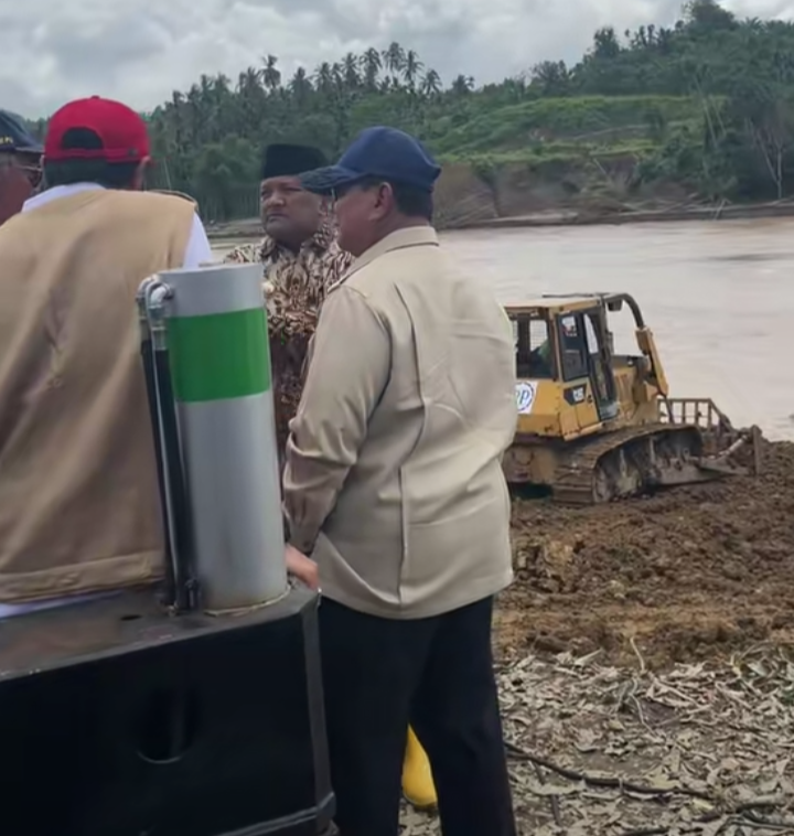 Selanjutnya, Presiden Prabowo meninjau pengerjaan darurat Jembatan Tepi Mane di Kabupaten Bireuen. Jembatan tersebut merupakan salah satu jalur vital yang sempat terputus akibat banjir besar.