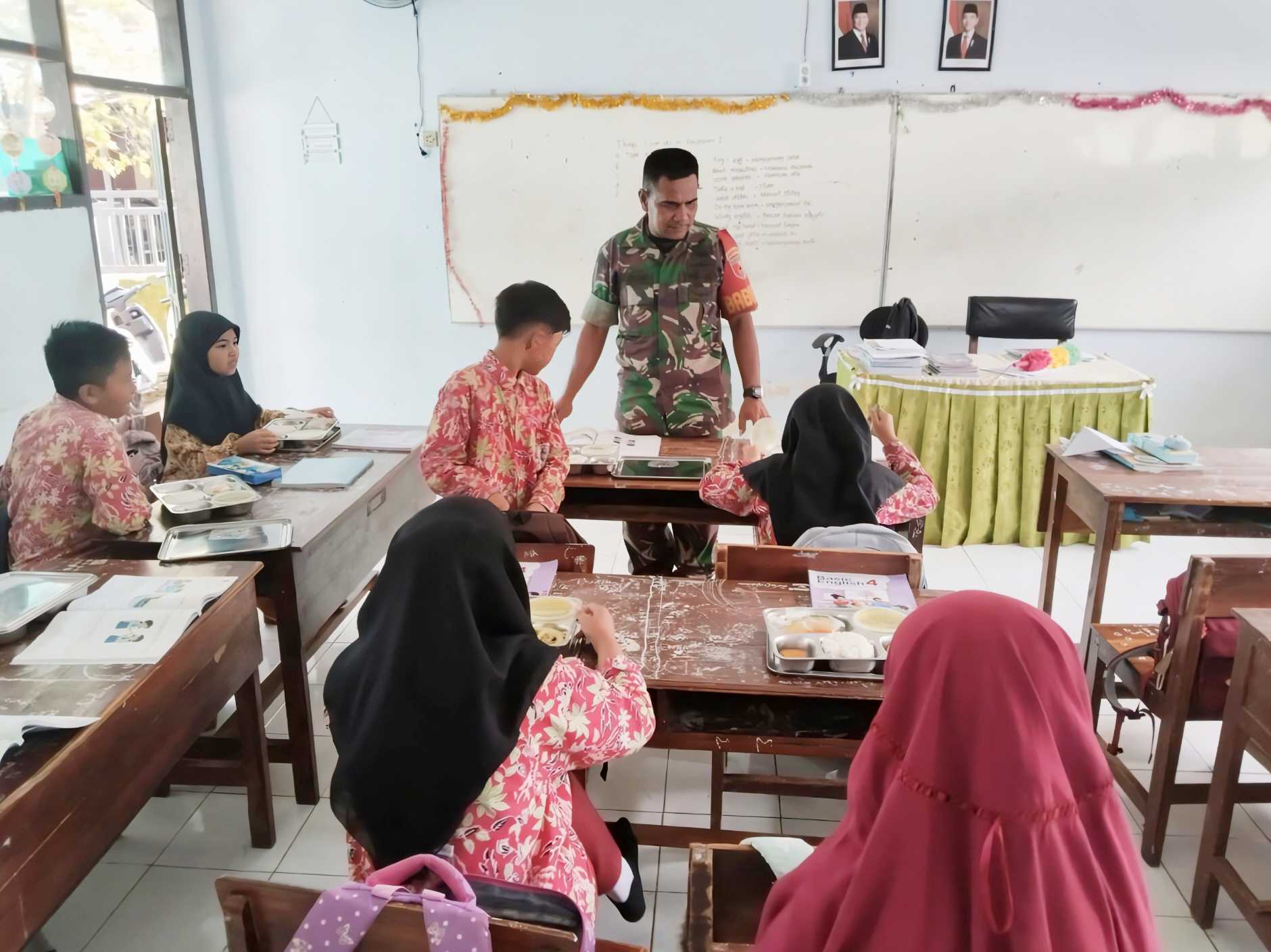 Babinsa Petemon Serka Romi Julianto menyampaikan bahwa pendampingan dilakukan guna memastikan distribusi berjalan tertib, tepat sasaran, serta makanan diterima siswa dalam kondisi layak konsumsi.