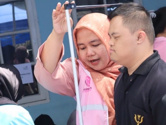 Teks Foto: Satu di antara puluhan penyandang disabilitas saat menjalani pemeriksaan kesehatan di Posyandu Disabilitas yang digelar Srikandi PLN.
