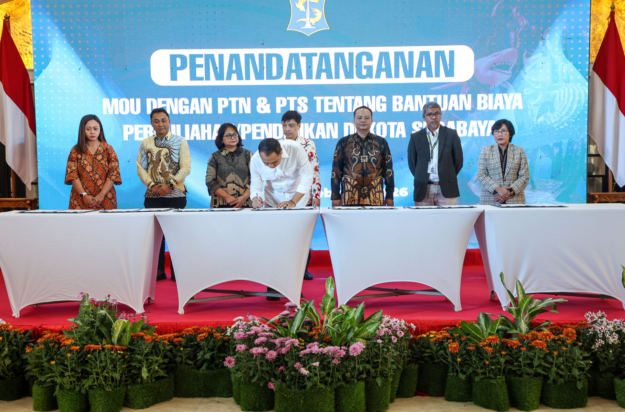 Surabaya, beritalima.com | Pemerintah Kota (Pemkot) Surabaya melakukan langkah revolusioner dalam dunia pendidikan dengan menjalin kerja sama strategis bersama 8 Perguruan Tinggi Negeri (PTN) dan 24 Perguruan Tinggi Swasta (PTS) melalui Penandatanganan Nota Kesepahaman (MoU) di Lobby Balai Kota pada Kamis, (5/2/2026). Kerja sama ini, berfokus pada pemberian beasiswa berupa bantuan biaya perkuliahan bagi mahasiswa dari keluarga prasejahtera di Kota Pahlawan.