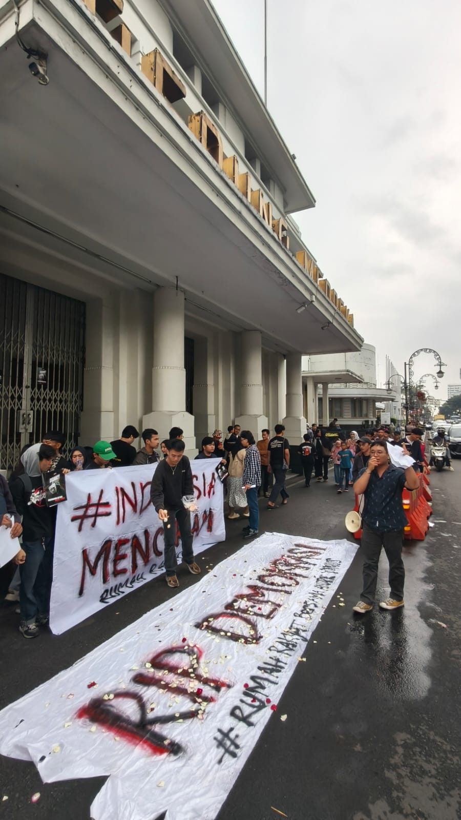 Sebagai bentuk respon, Rumah Rakyat menggelar aksi demonstrasi di depan Gedung Merdeka, Kota Bandung, dengan mengusung tagline “Indonesia Mencekam”.
