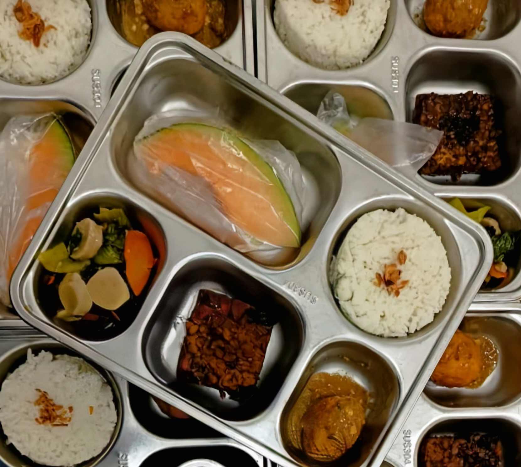 Setiap hari, dapur MBG Patemon menghadirkan beragam menu masakan guna memenuhi kebutuhan gizi anak-anak sekaligus mencegah kejenuhan. Menu yang disajikan kali ini berupa nasi putih tabur bawang goreng, sayur bayam, telur, serta buah melon yang kaya akan vitamin.