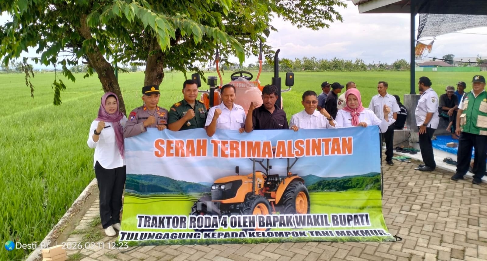 TULUNGAGUNG, beritalima.com- Wakil Bupati Tulungagung, Ahmad Baharudin, menyerahkan bantuan Alat dan Mesin Pertanian (Alsintan) berupa satu unit traktor roda empat kepada Gabungan Kelompok Tani (Gapoktan) Tani Makmur.
